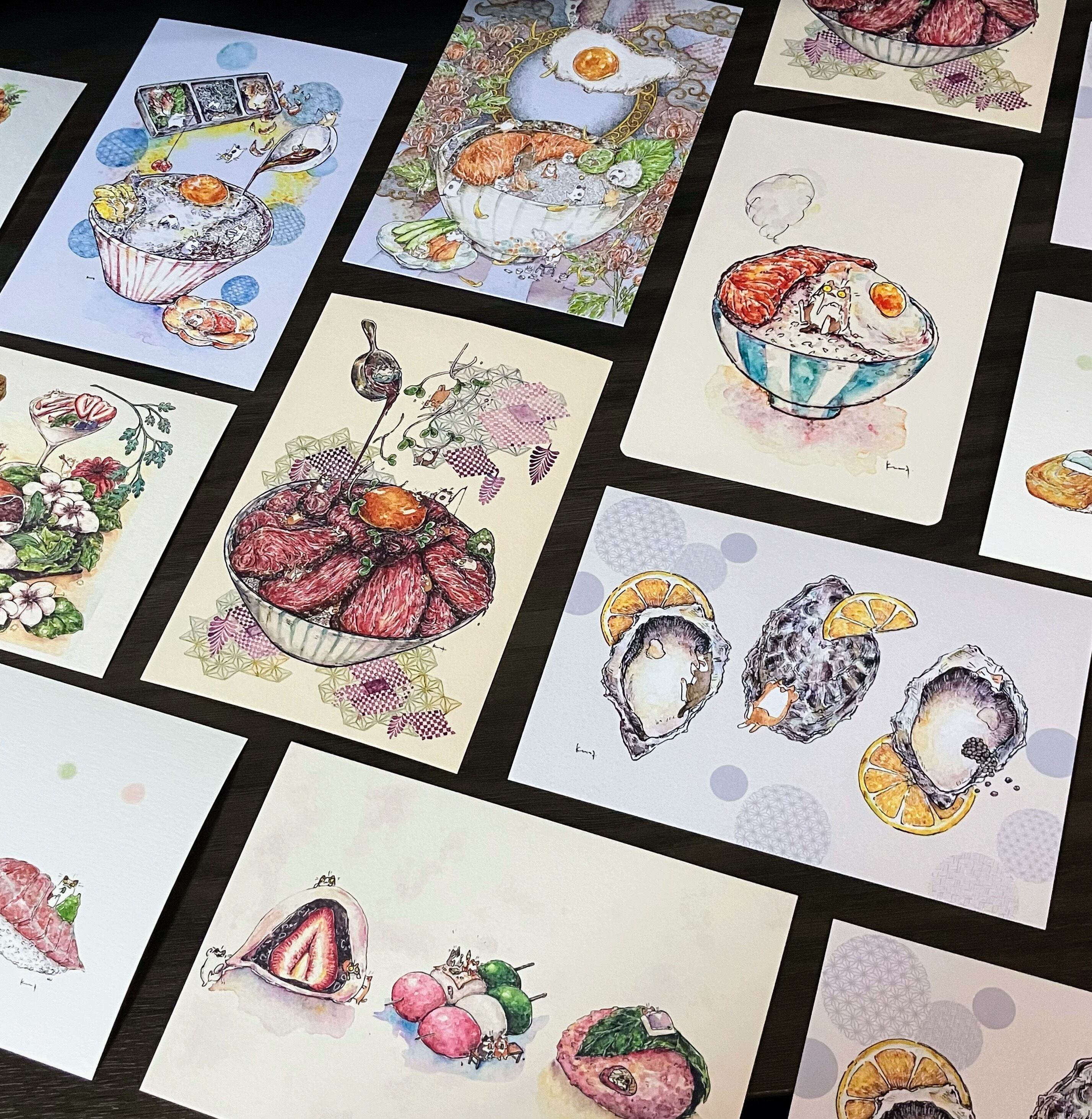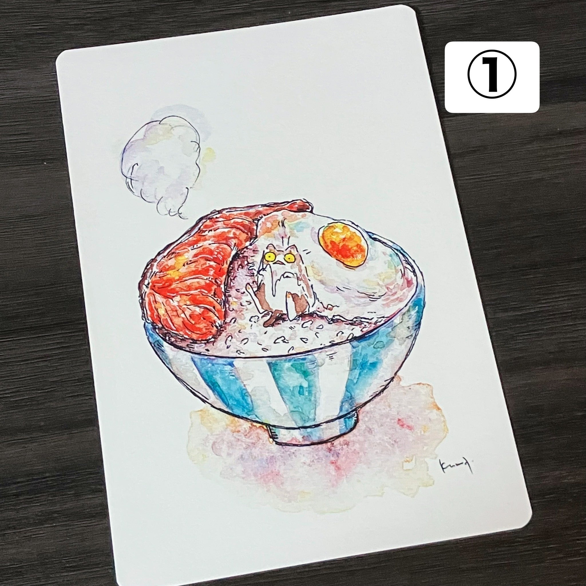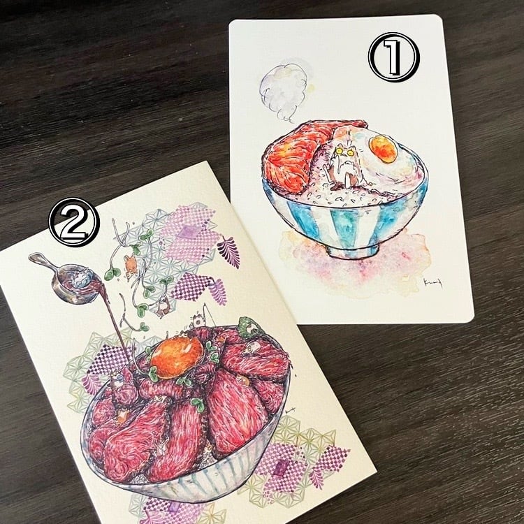 くまきちのポストカードはイラストによって使用する紙を選んでいます。